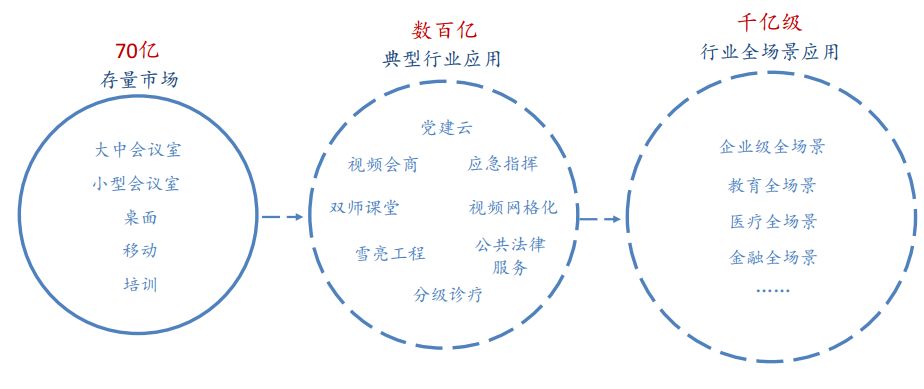 随着政府信息化的不断深入,今后对于视频会议需求最大的还将来自于政府部门,另外,视频会议在教育、医疗行业的应用能够整呈现出蓬勃发展的势头,未来将是快速发展的行业。
